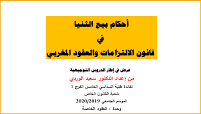 أحكام بيع الثنيا في قانون الالتزامات والعقود المغربي PDF أحكام بيع الثنيا في قانون الالتزامات والعقود المغربي من اعداد الدكتور : سعيد الوردي عرض في اطار الدروس التوجيهية لفائدة طلبة السداسي الخامس شعبة القانون الخاص الموسم الجامعي : 2019 - 2020 للتحميل بصيغة PDF ----------------